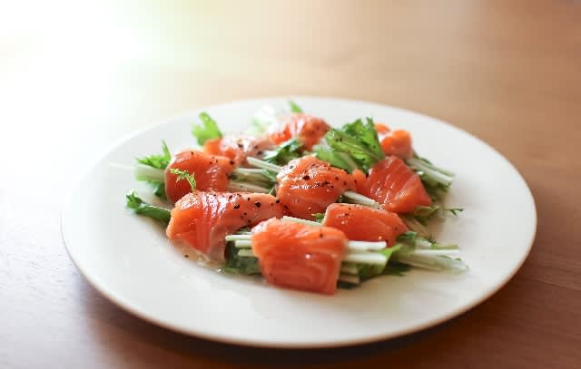 水菜のスモークサーモン巻きサラダ