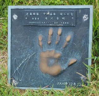 NHK大河ドラマ「源義経」に出演された方たちの手形のオブジェが飾ってあります。